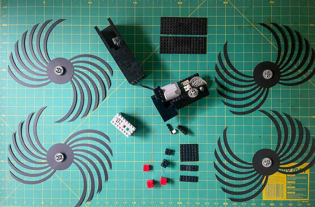 A prototype where multiple suspended elements are independently raised and lowered to create flowing, wave-like motion. Synchronized movement is driven by simple mathematical patterns running directly on the controller.
