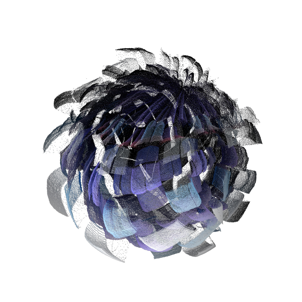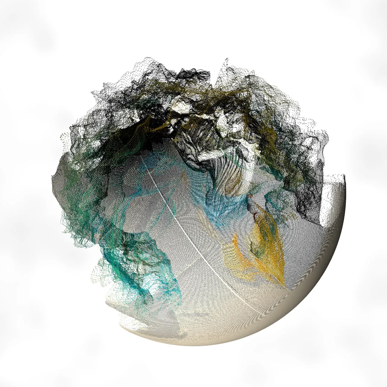 - Particle Rendering: The base 3D geometry (e.g., a sphere) is converted into a particle system using a Convert SOP, allowing for a more intricate and granular visual style.