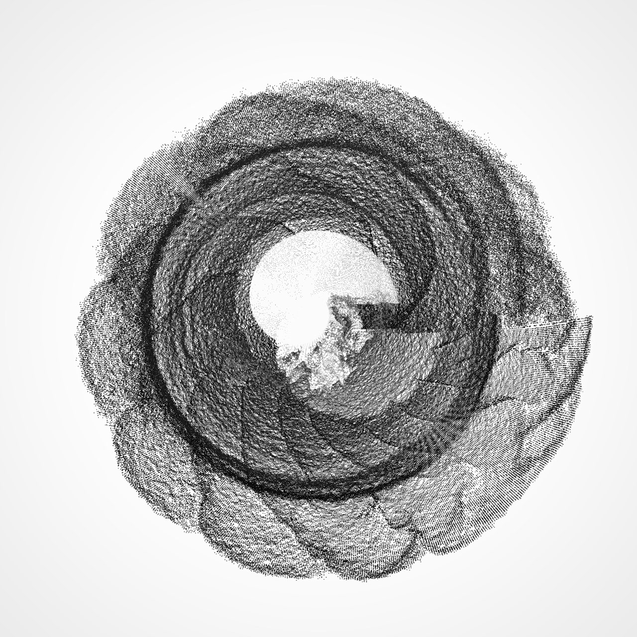 - Texture Pre-Processing: Before the source texture is used to displace the particles, it is processed by a switchable effects module that includes a complex feedback loop, a radial blur, and a light tunnel effect. This allows the history of the texture’s state to continually influence the particle system’s form.
