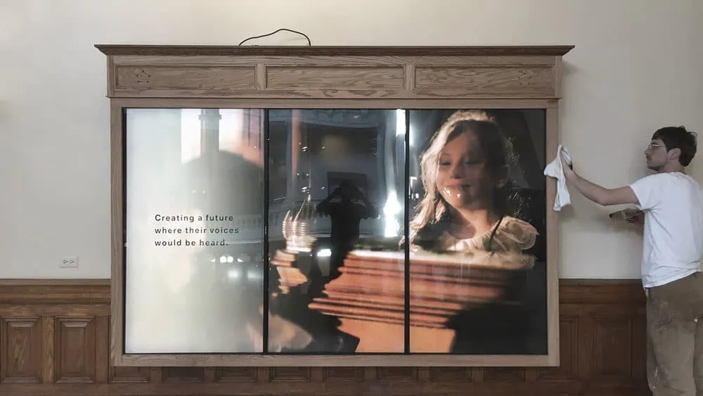 - Worked with museum staff and a local carpenter to meet power, sound, and mounting requirements.
