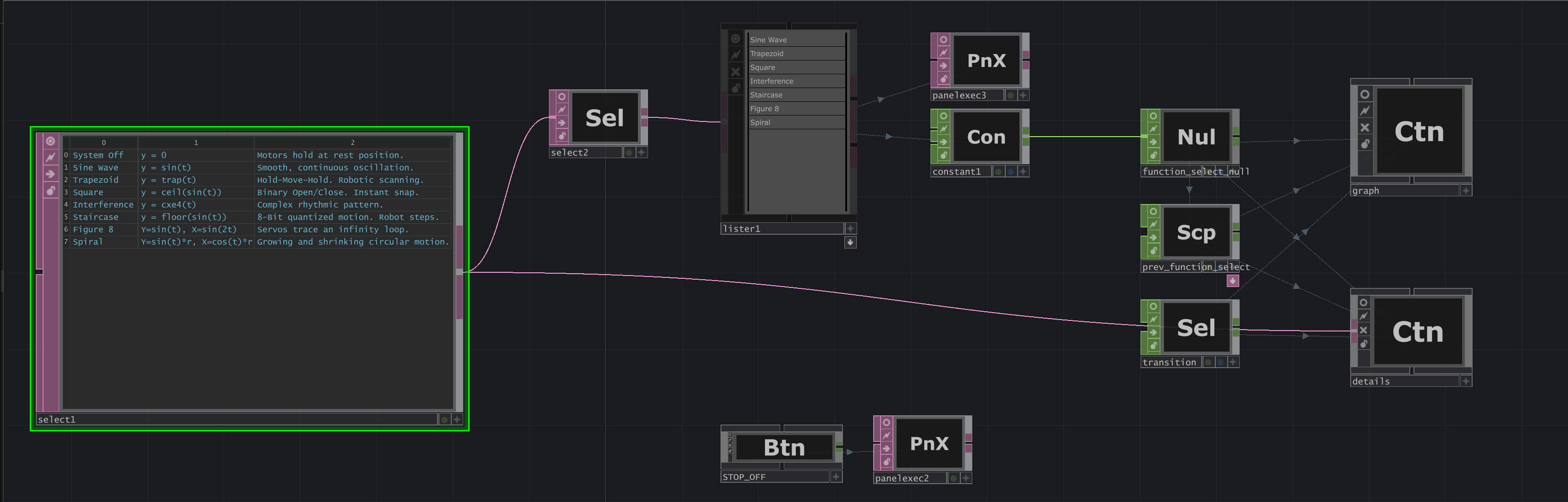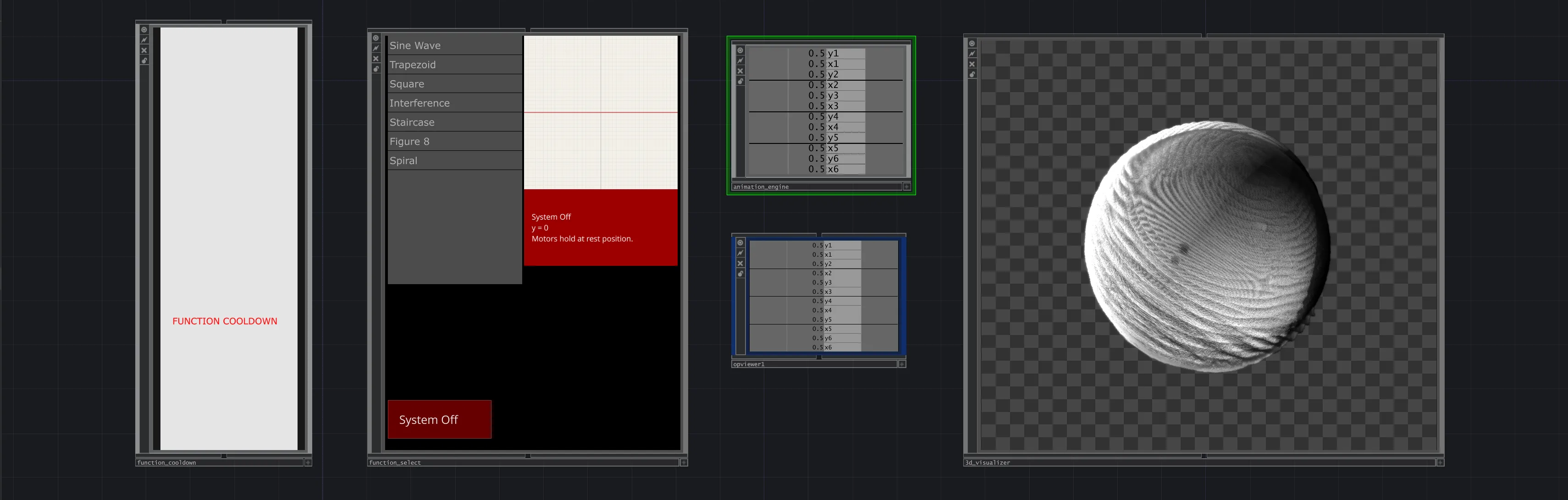 - A custom Python-based “Math Engine” in TouchDesigner was developed to generate normalized (0.0–1.0) coordinates for each servo pair. This engine incorporated “Stagger Logic” to enable phase-shifted wave propagation, allowing the physical grid to mirror a real-time 3D digital twin.