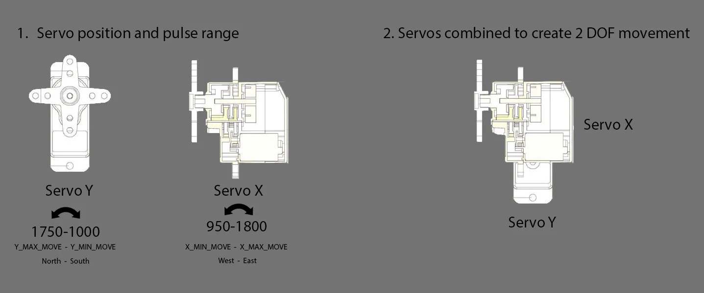 - A high-speed, low-latency control pipeline was implemented using an ESP32 microcontroller. This involved developing custom C++ firmware to parse incoming Serial data streams from TouchDesigner and accurately map the normalized coordinates to precise microsecond pulse widths for the PCA9685 PWM driver, controlling 12 synchronized hobby servos.